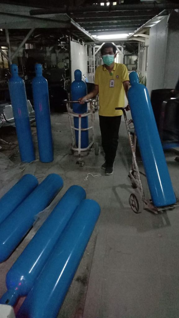 10 oxygen tanks, 980 masks, 20,500 surgical gloves and 100 blankets were delivered to Immanuel Hospital in Bandung (Central Java) in July and August 2021.